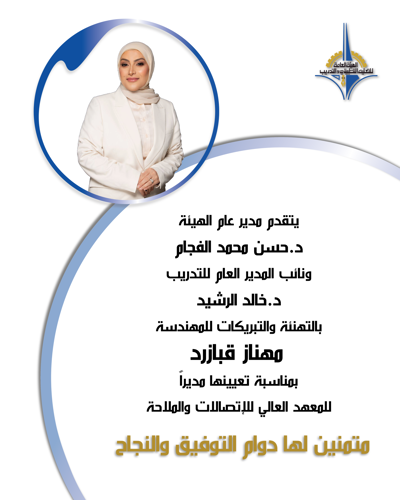 أصدر مدير عام الهيئة العامة للتعليم التطبيقي والتدريب د. حسن محمد الفجام قرارا بتعيين كل من المهندسة مهناز حسن علي قبازرد مديراً للمعهد العالي للاتصالات والملاحة لمدة سنتين، وتعيين الأستاذة نورية...