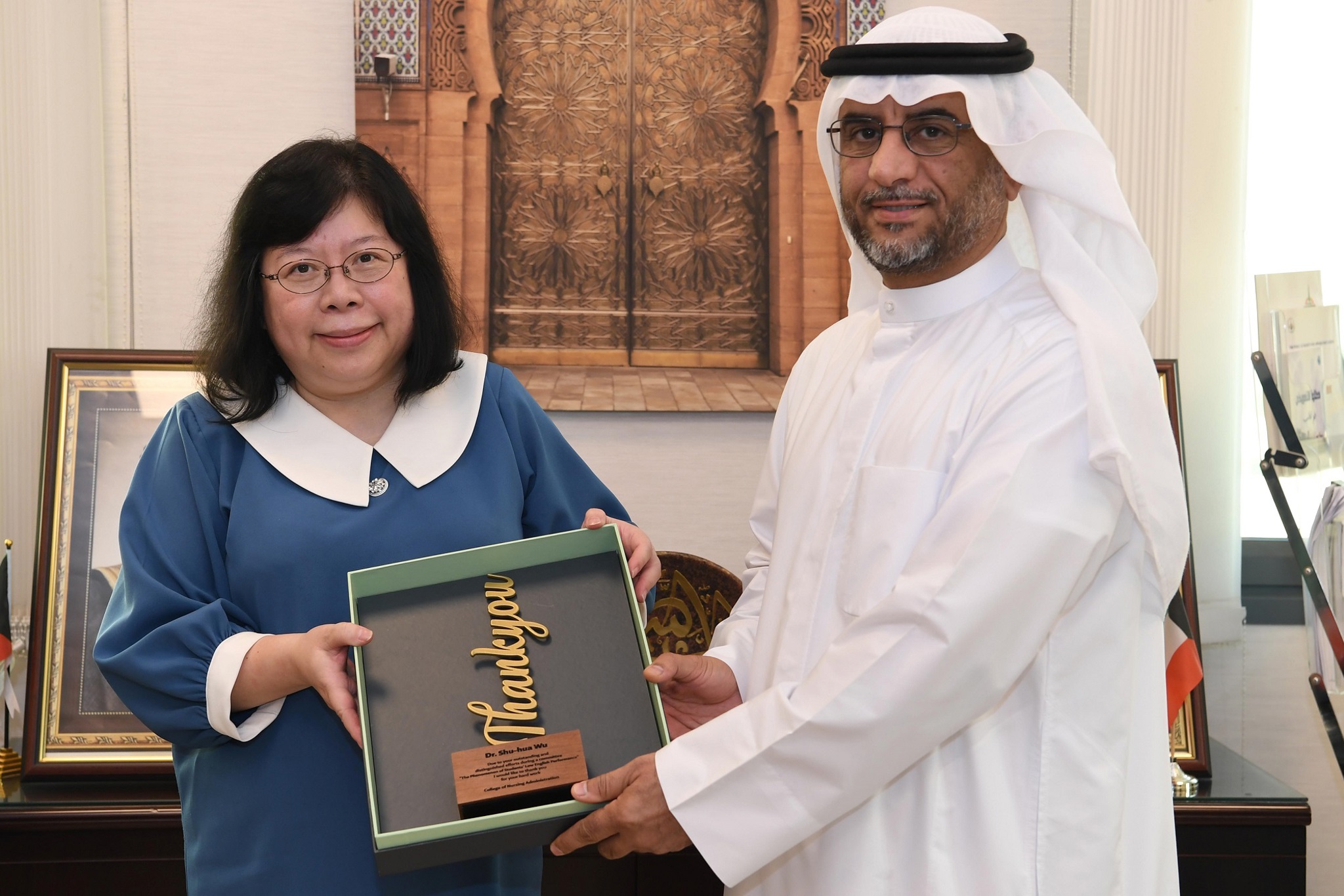 كرم عميد كلية التمريض د. علي فلاح الحجرف أعضاء لجنة " دراسة ظاهرة ضعف مستوى الطلبة في اللغة الإنجليزية " وهم كل من مساعد العميد للشئون الاكاديمية د. ألاء الخليفة ، و د. شوهواوو ، وأ.مريم القطان ،...