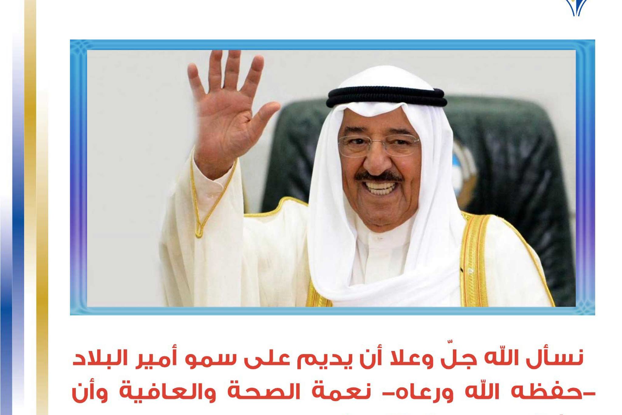 نسأل الله جل وعلا ان يديم على سمو أمير البلاد حفظه الله ورعاه نعمة الصحة والعافية.