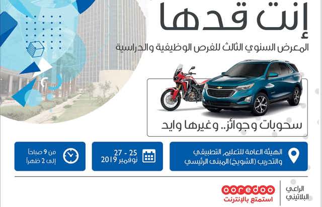 أعلن عميد القبول والتسجيل في الهيئة العامة للتعليم التطبيقي والتدريب د. مشعل المنصوري عن استمرار استقبال طلبات الالتحاق بكليات ومعاهد الهيئة لخطة الشواغر للقبول للفصل الدراسي الثاني 2019/ 2020 حتى...