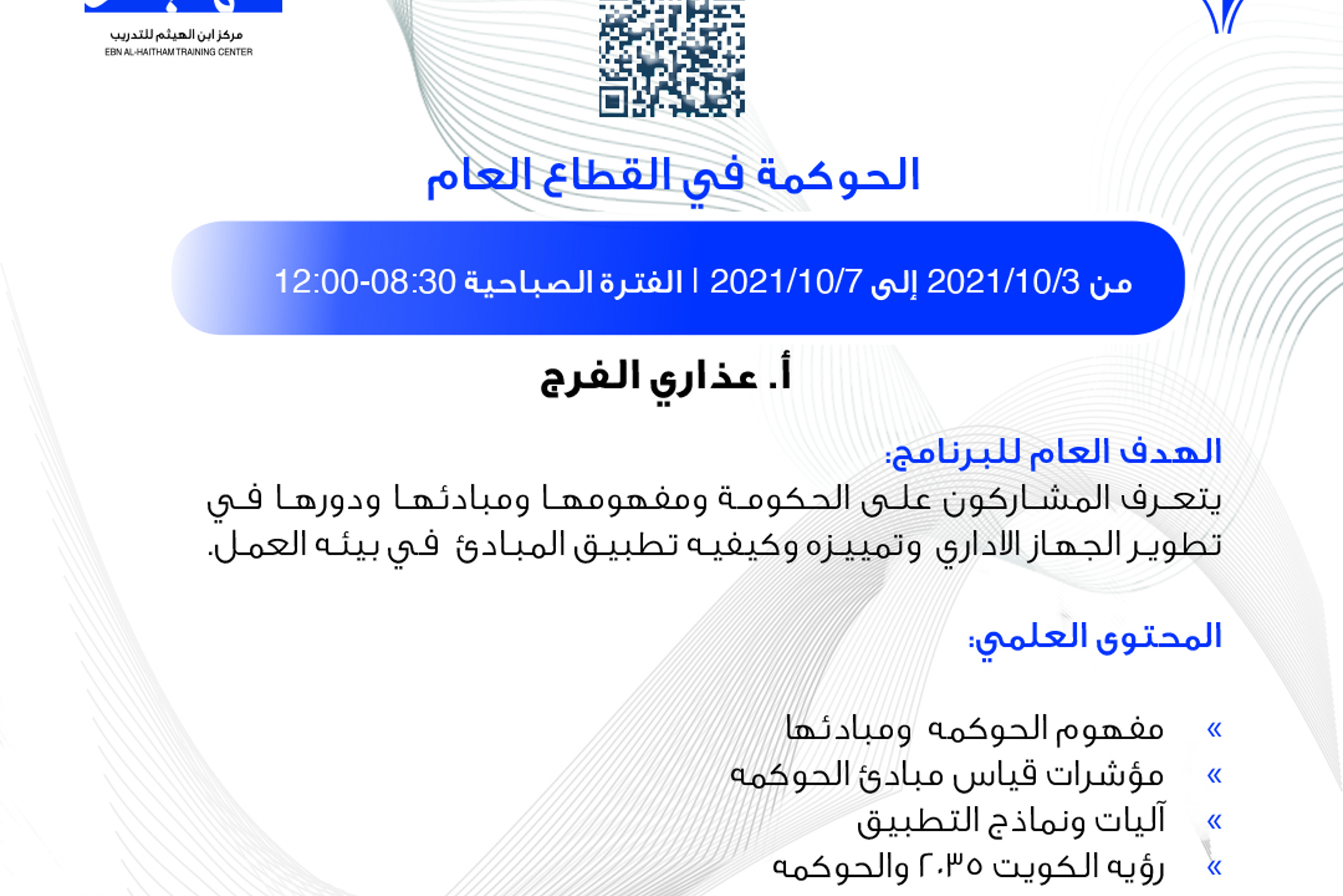 دورة الحوكمة في القطاع العام للأستاذة عذاري الفرج في مركز ابن الهيثم للتدريب