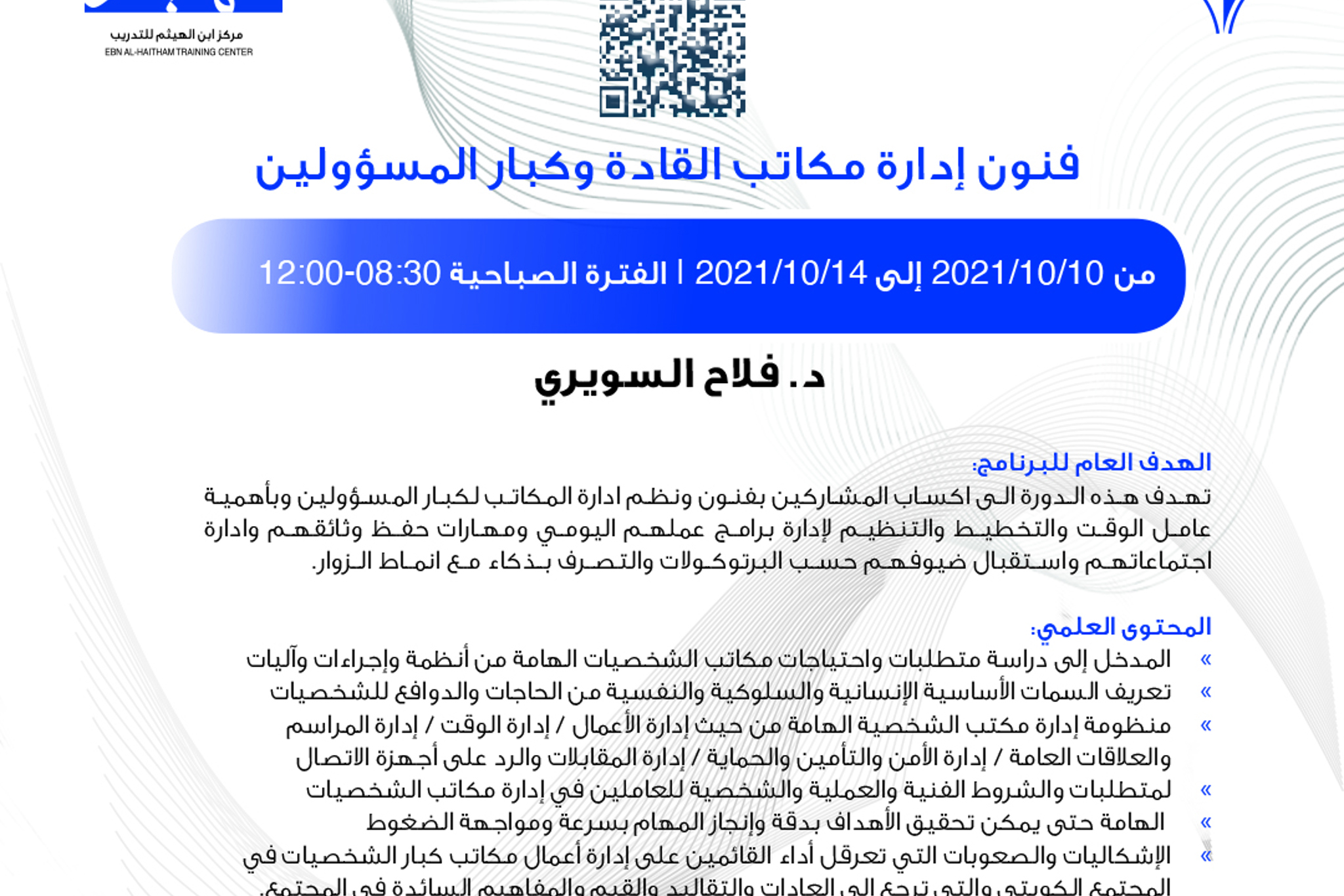 دورة فنون إدارة مكاتب القادة و كبار المسؤولين - د.فلاح السويري
