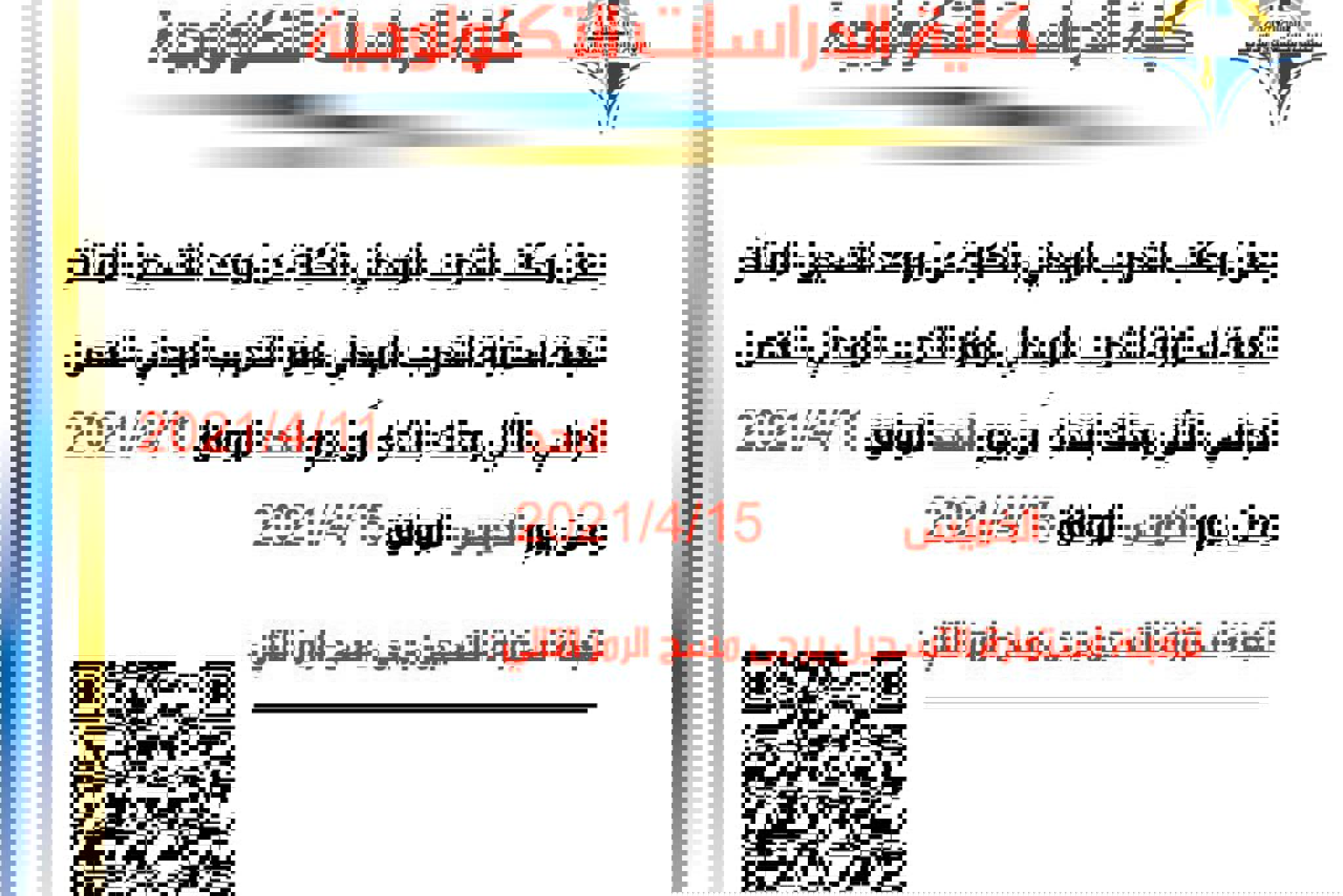 تعلن العمادة عن مواعيد اختبار القدرات للمقبولين في الكليات للفصل الدراسي الأول 2021\2022