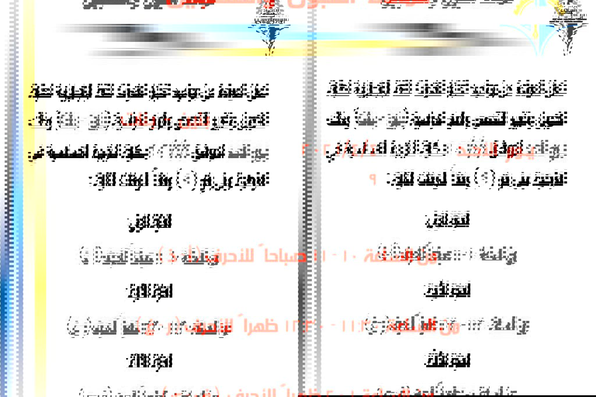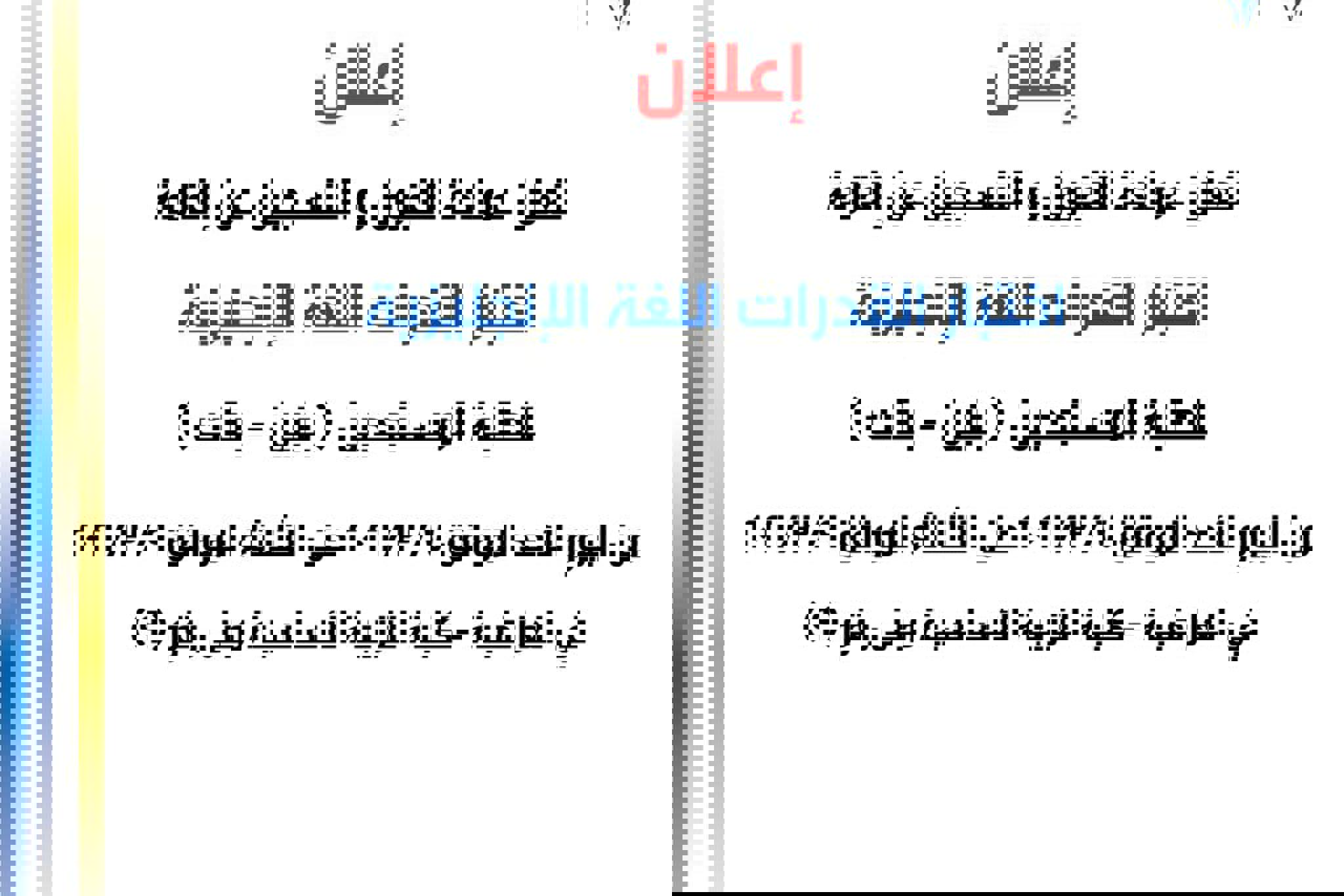 تعلن عمادة القبول والتسجيل عن اقامة اختبار القدرات اللغة الانجليزية للطلبة المستجدين ( بنين -...