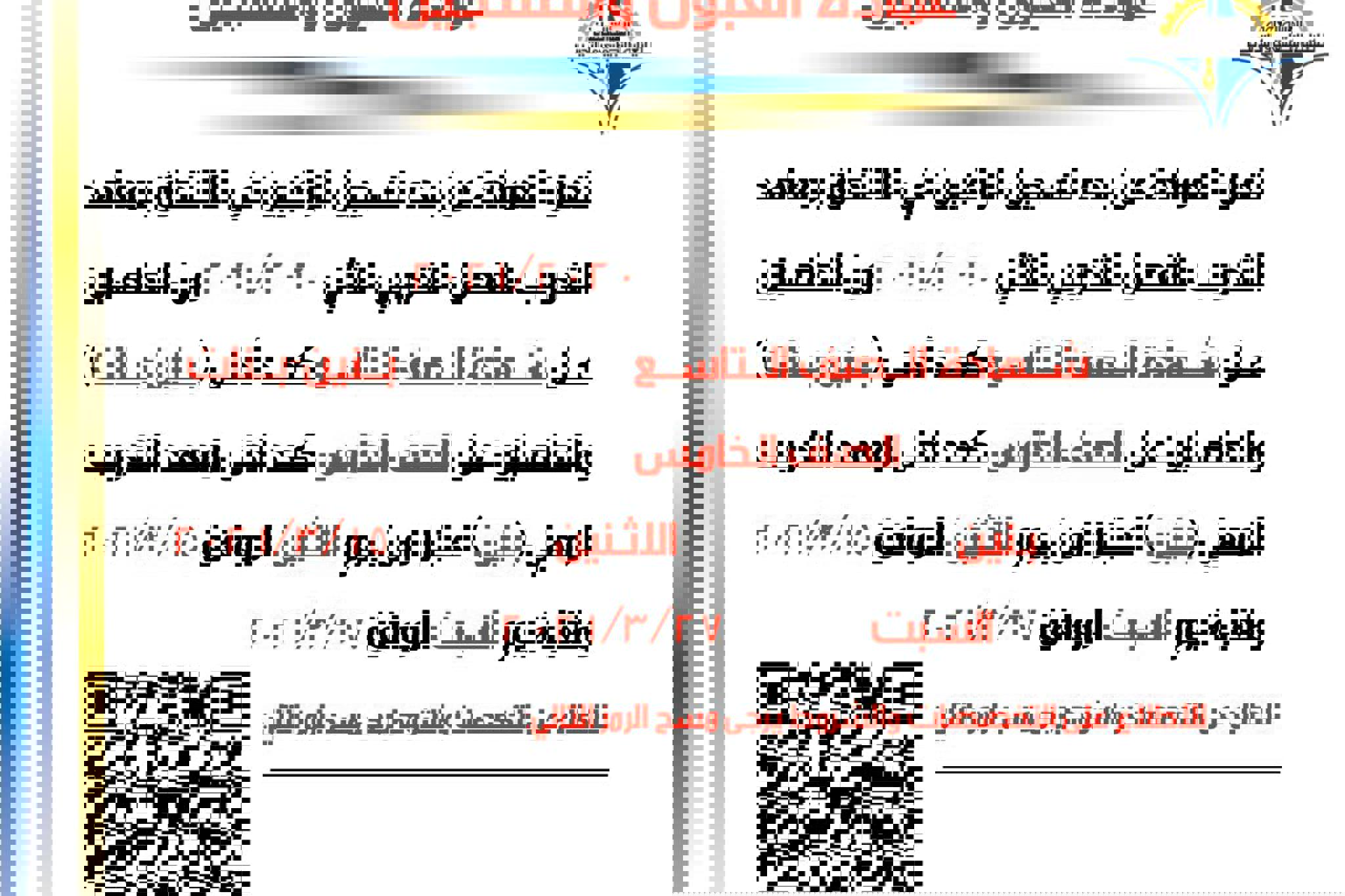 تعلن عمادة القبول والتسجيل عن موعد اختبار القدرات لبكالوريوس تكنولوجيا الهندسة الكيمائية