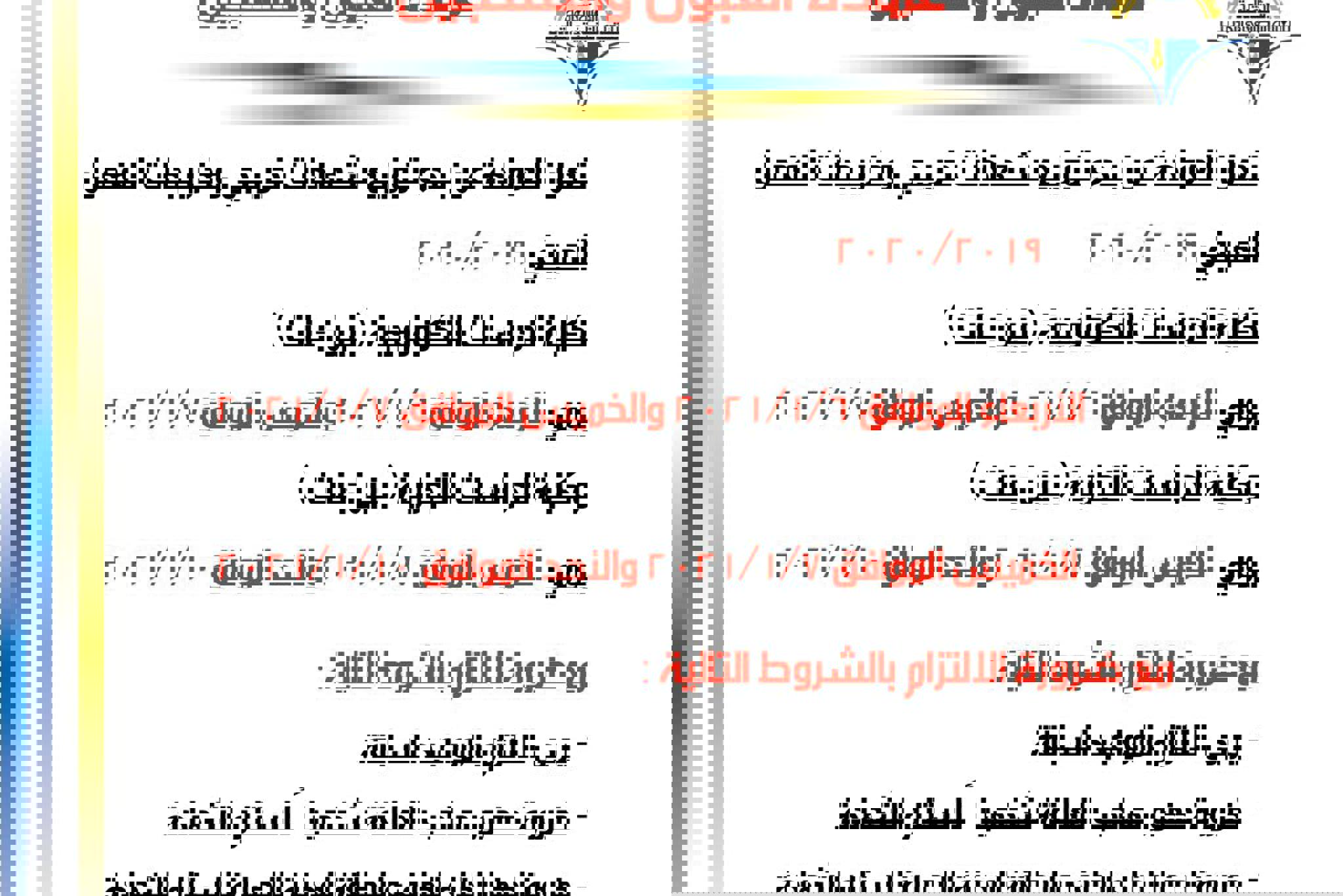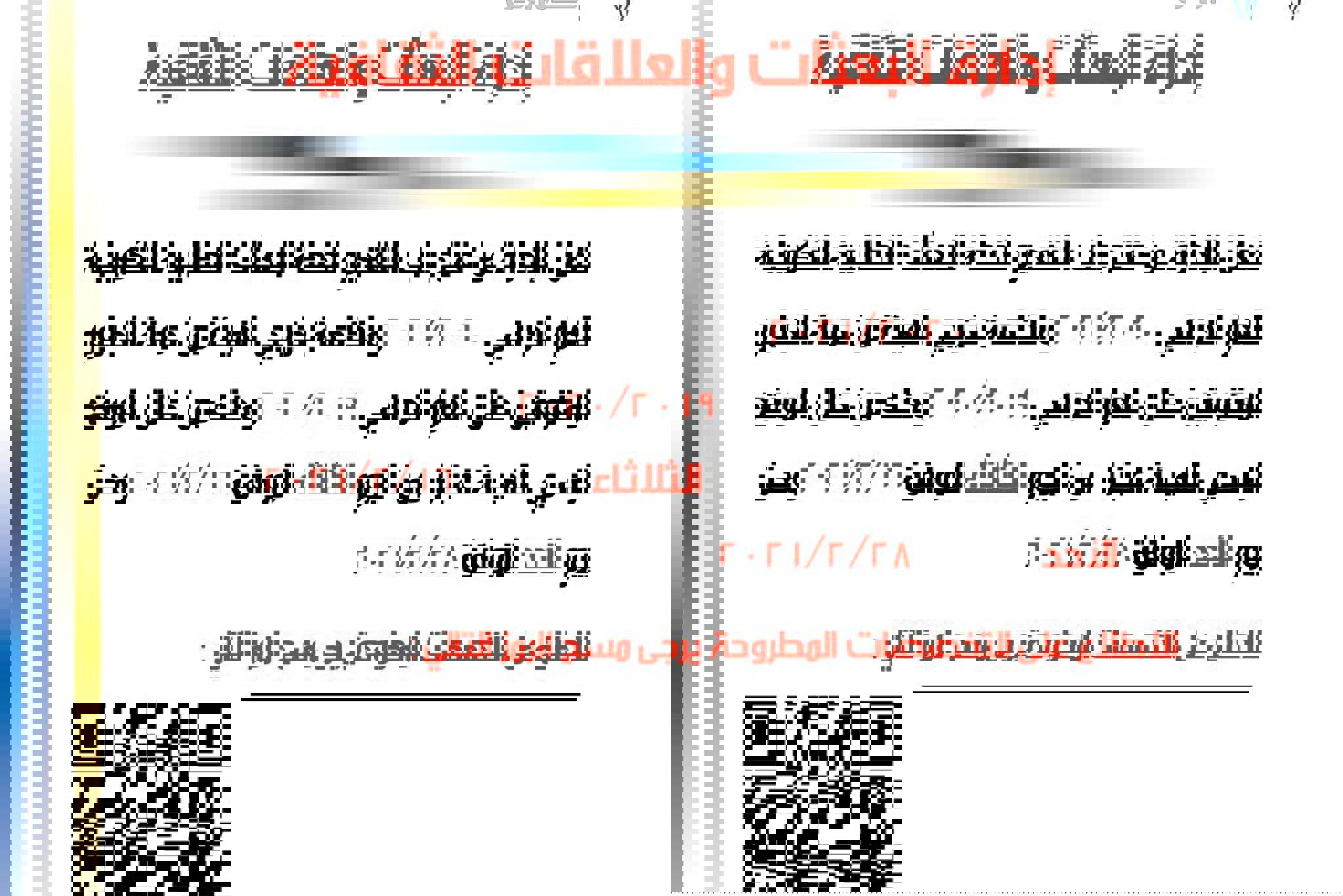 تعلن ادارة البعثات والعلاقات الثقافية عن خطة التسجيل الالكتروني البعثات الطلابية للعام الدراسي...
