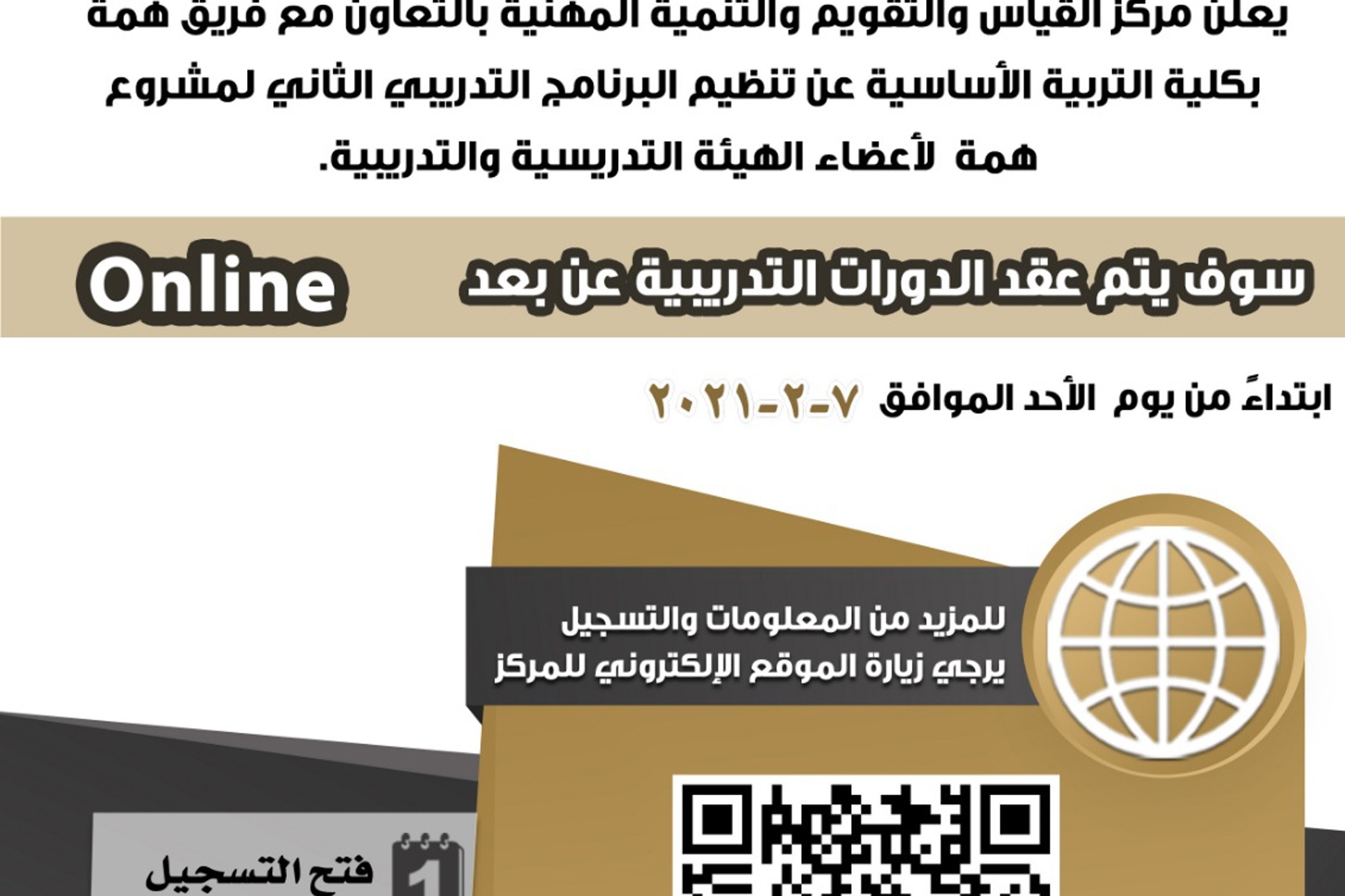 يعلن مركز القياس والتقويم والتنمية المهنية بالتعاون مع فريق همة بكلية التربية الاساسية