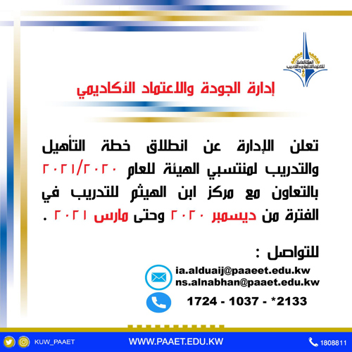 تعلن الهيئة العامة للتعليم التطبيقي والتدريب لطلبتها الاعزاء بانه يمكنهم التقديم على طلب هويه...