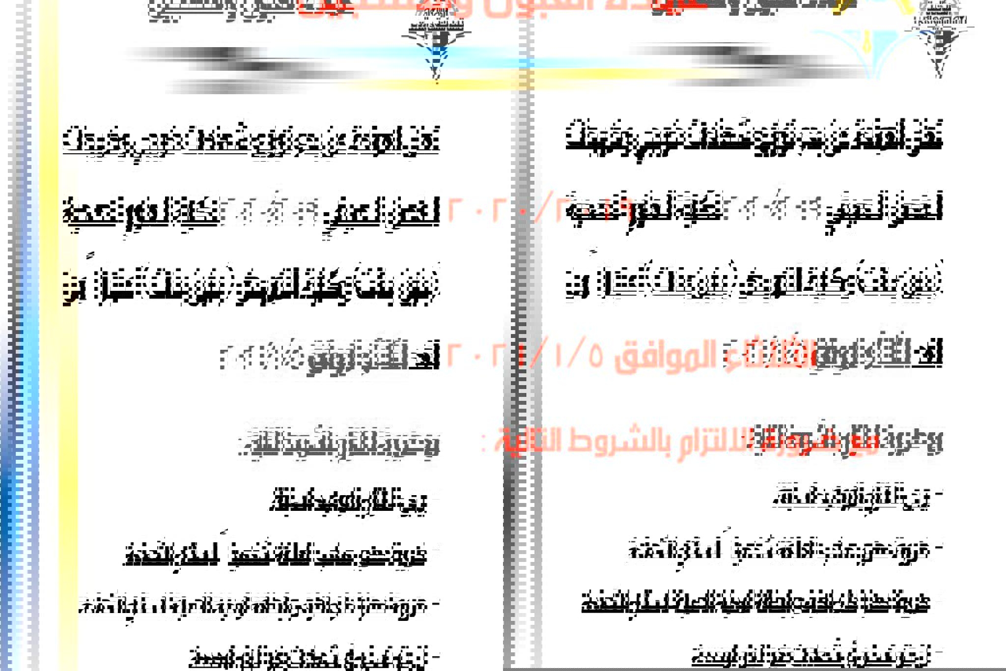 اعلان هام لطلبة الكليات