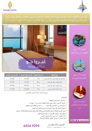​تقدم ادارة العلاقات العامة والاعلام بالهيئة بالتعاون مع فندق جراند عرض خاص لمنتسبي الهيئة.