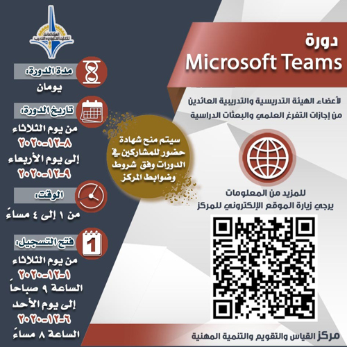 ​دورة مايكروسوفت تيمز لاعضاء الهيئة التدريسية والتدريبية العائدين من اجازات التفرغ العلمي...