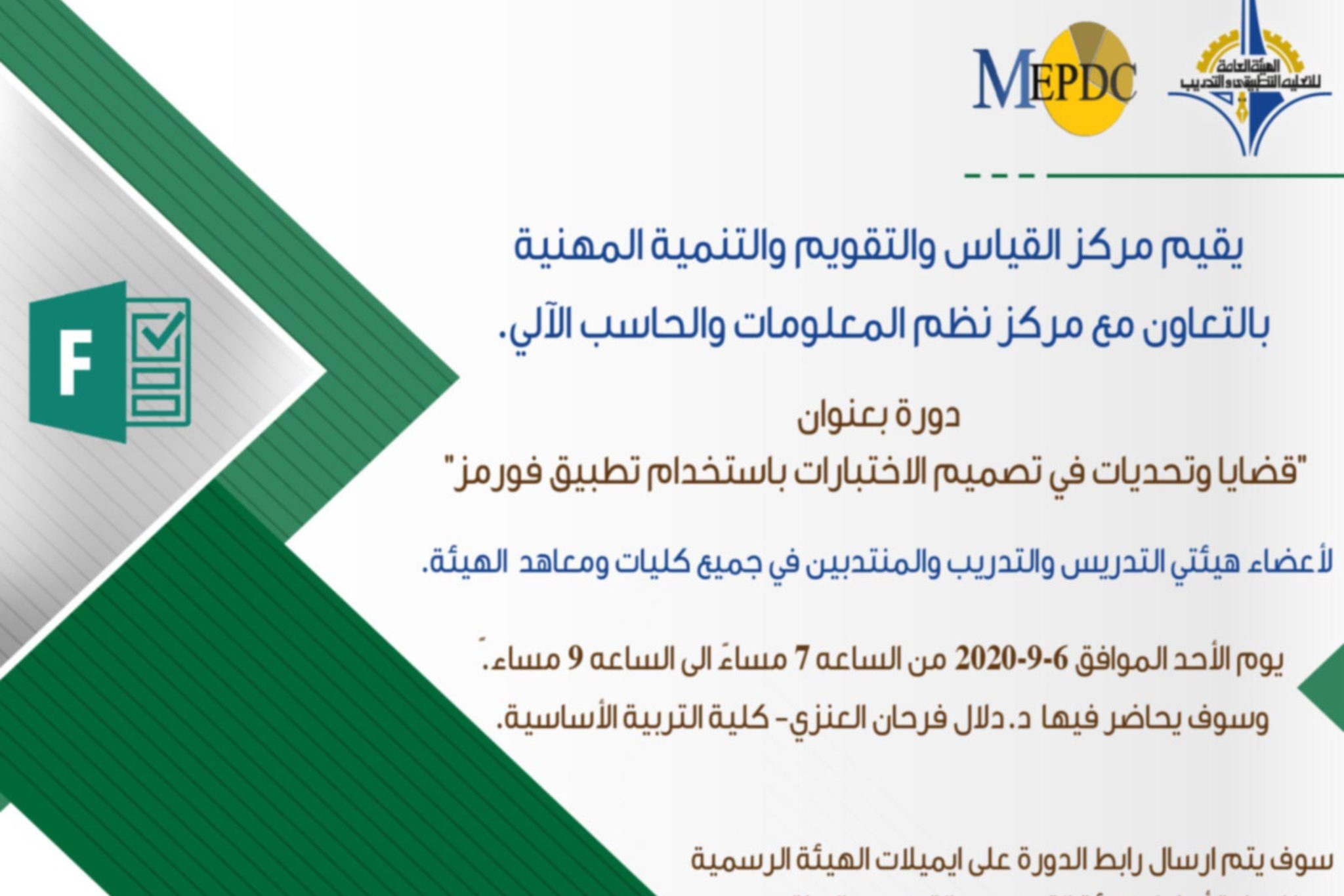 دورة بعنوان قضايا وتحديات في تصميم الاختبارات باستخدام تطبيق فورمز