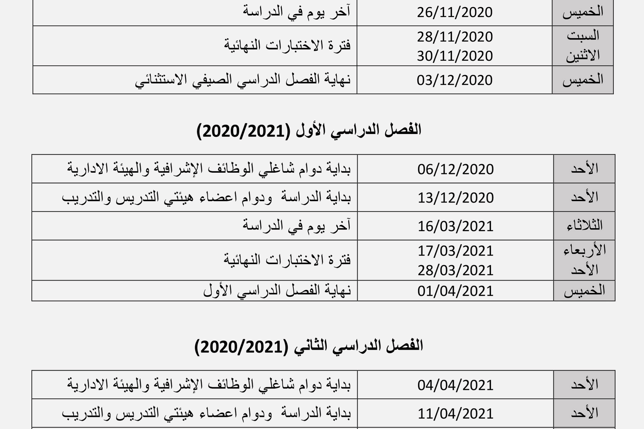 التقويم الدراسي والتدريبي للفصل التكميلي الثاني لمعاهد وكليات الهيئة 2019 - 2020