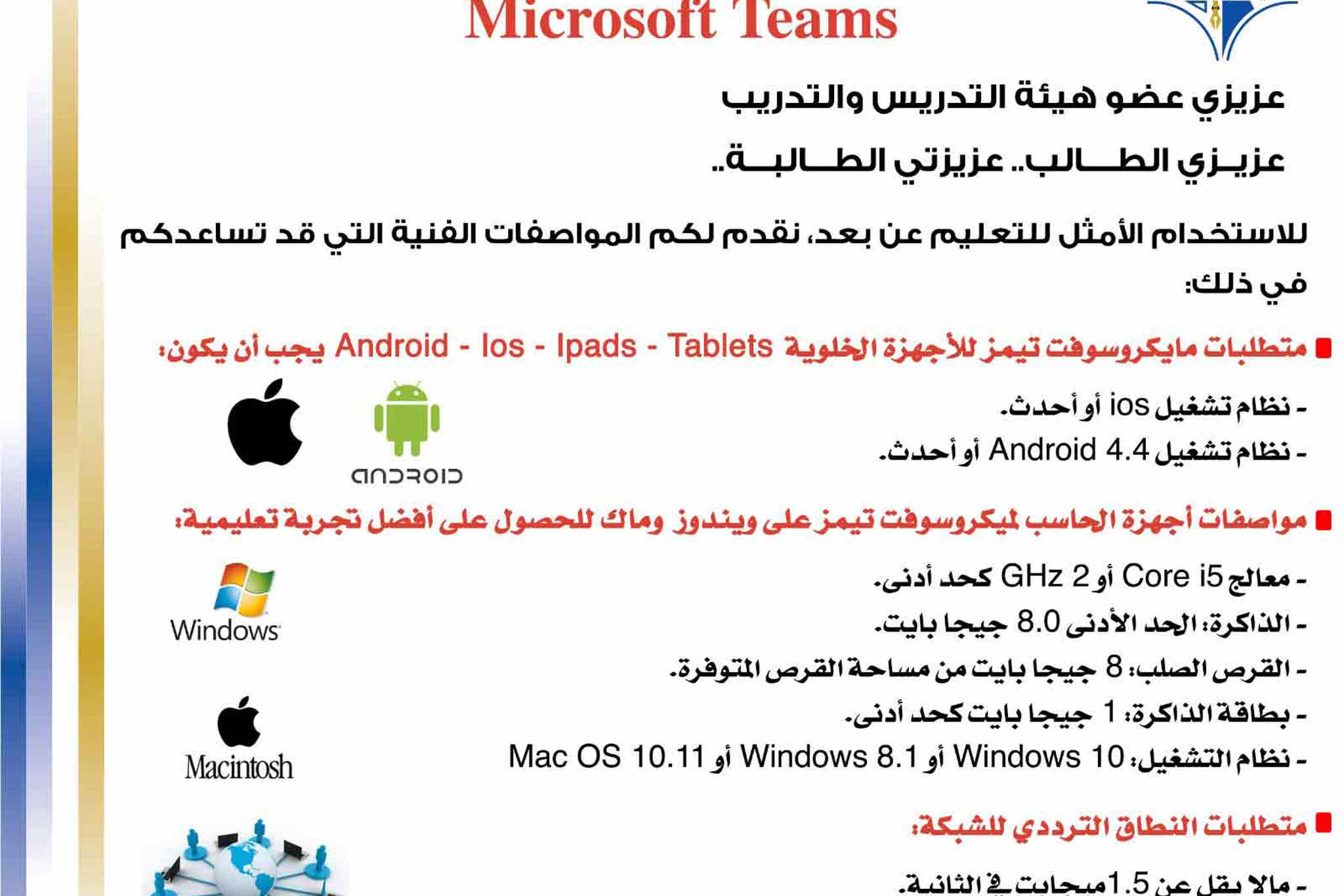 متطلبات نظام مايكروسوفت تيمز لاعضاء هيئة التدريس والتدريب وطلبة الهيئة.
