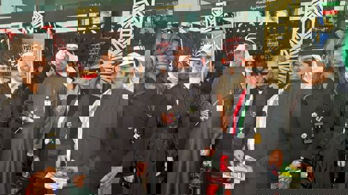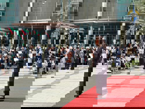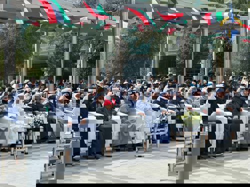 وبهذه المناسبة ألقى عميد الكلية أ. د. مبارك الذروة كلمته قال فيها: نلتقي اليوم تحت عنوان رايات الوطن وفي هذه المناسبة نجدد الولاء لقيادتنا الحكيمة ونؤكد مضينا على العهد أوفياء لهذا الوطن العزيز...
