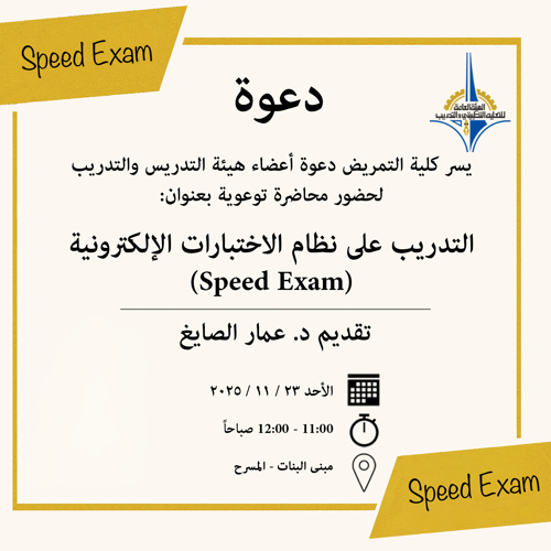 يسر كلية التمريض دعوة أعضاء هيئة التدريس و التدريب في مختلف القطاعات في الهيئة لحضور محاضرة...