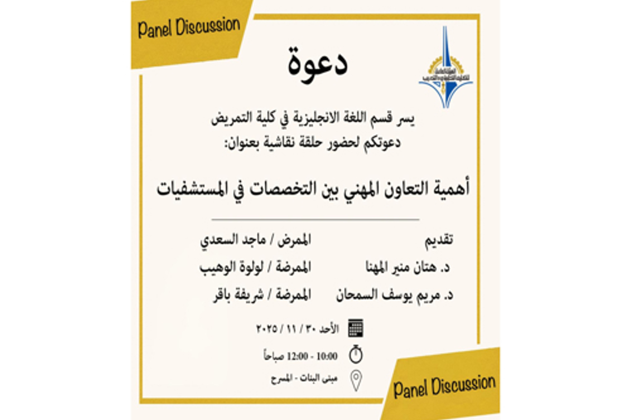 حلقة نقاشية بعنوان "اهمية التعاون المهني بين التخصصات في المستشفيات"