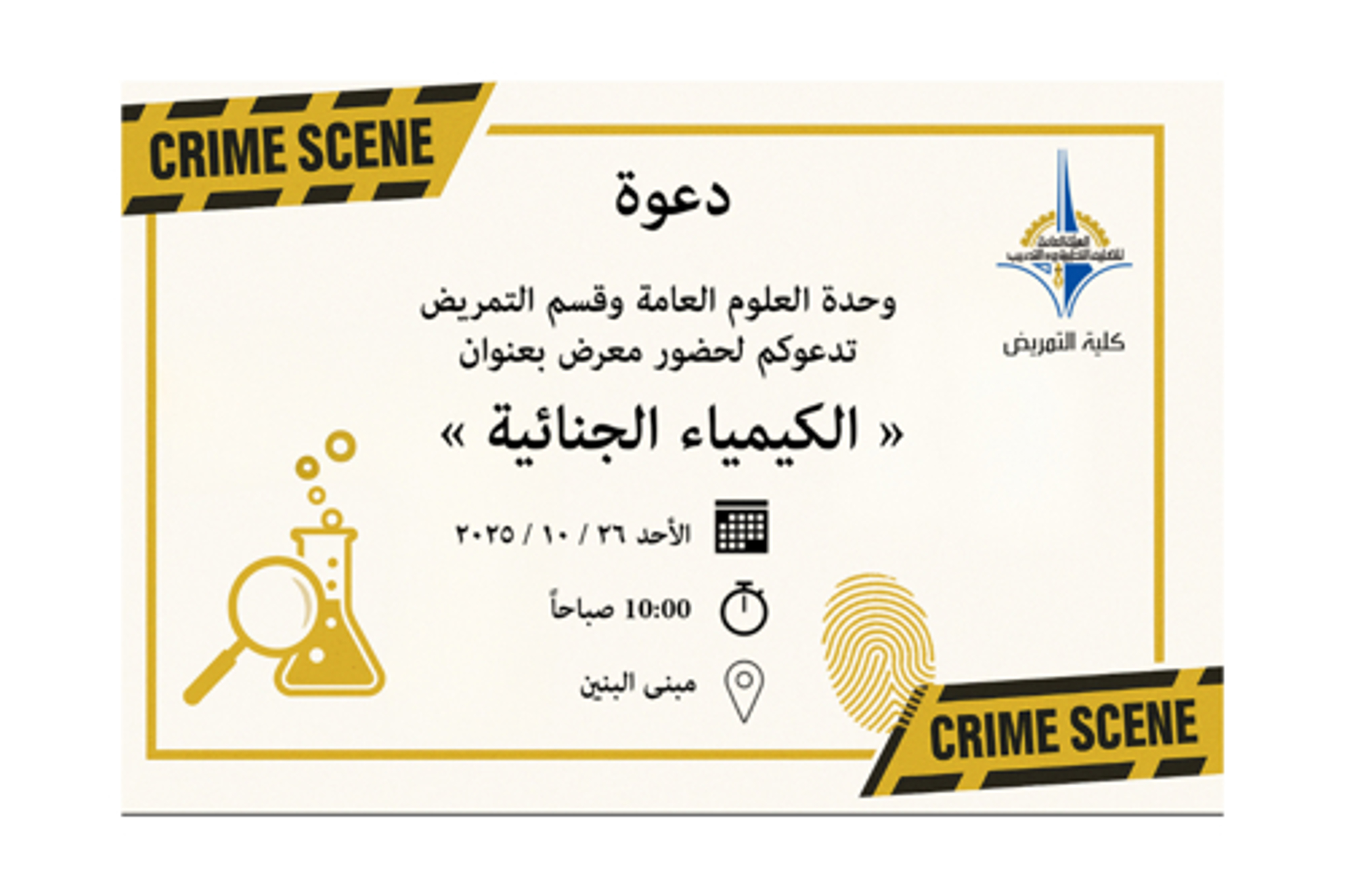 إعلان من كلية التمريض لحضور معرض "الكيمياء الجنائية"