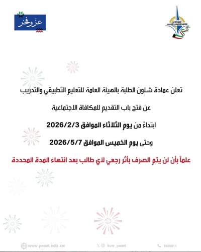 تعلن عمادة شئون الطلبة عن "فتح باب التقديم للمكافأة الاجتماعية"