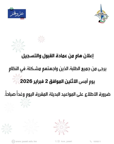 اعلان عمادة القبول والتسجيل عن رفع الحجب عن جميع حسابات الطلبة بالهيئة