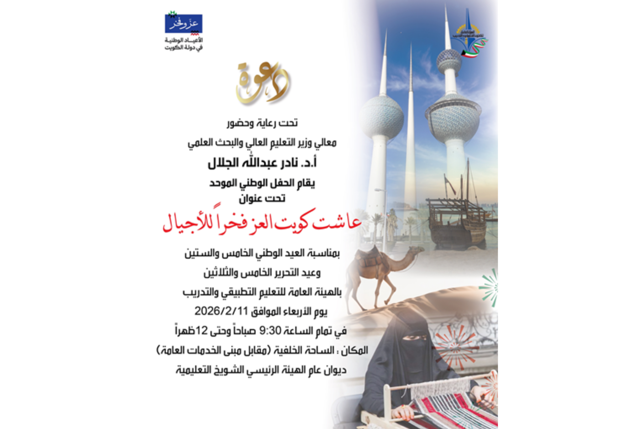 المزيددعوة من كلية الكويت للعلوم والتكنولوجيا للمشاركة في "الملتقي الأول في الإدارة الذكية"
