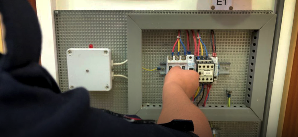 أما في تخصص كهرباء القوى، يتدرب الطالب على تجهيز الأسلاك والكابلات الرئيسية، وتوصيل مفاتيح التحكم بالمحركات الكهربائية وفق الأنظمة المعتمدة عالميًا، مع التركيز على الدقة والاحتراف في التوصيلات.