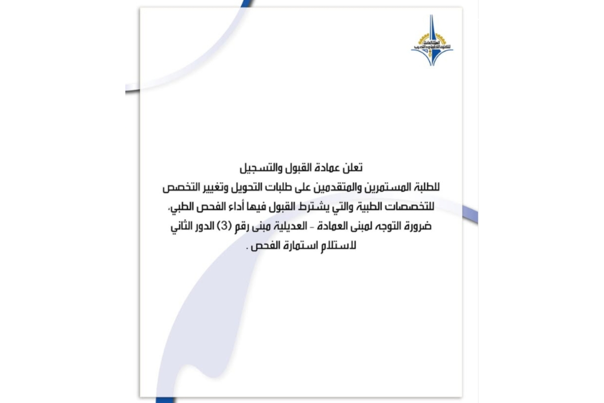 المزيدتنبيه للطلبة المستمرين و المتقدمين على طلبات التحويل و تغيير التخصص و للتخصصات الطبية