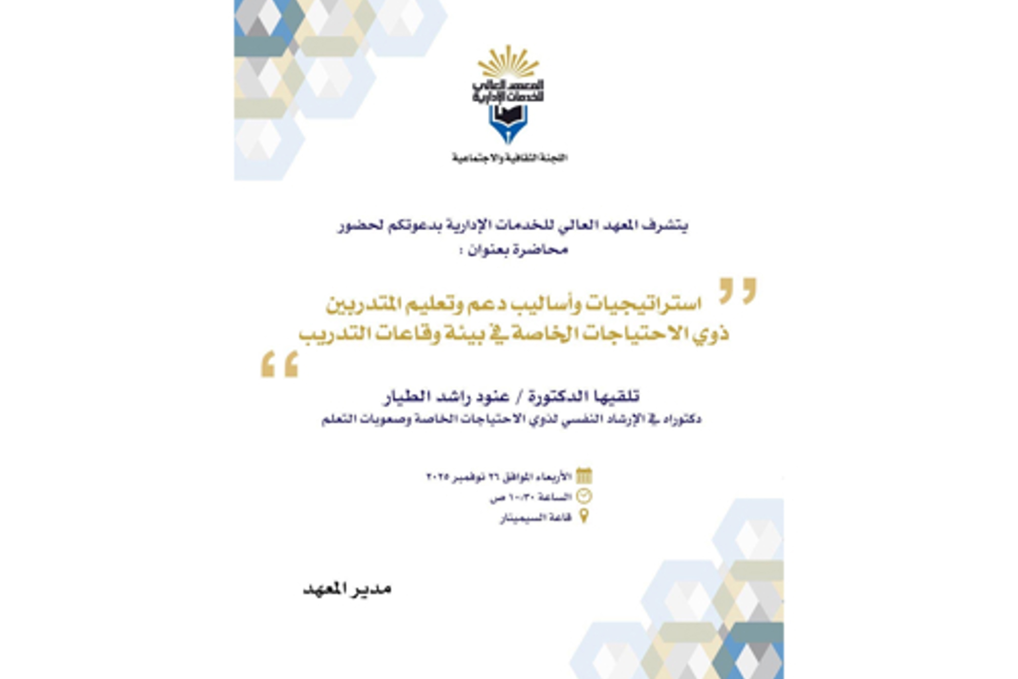يسر المعهد العالي للخدمات الادارية اللجنة الثقافية والاجتماعية علي مستوي المعهد تنظيم محاضرة